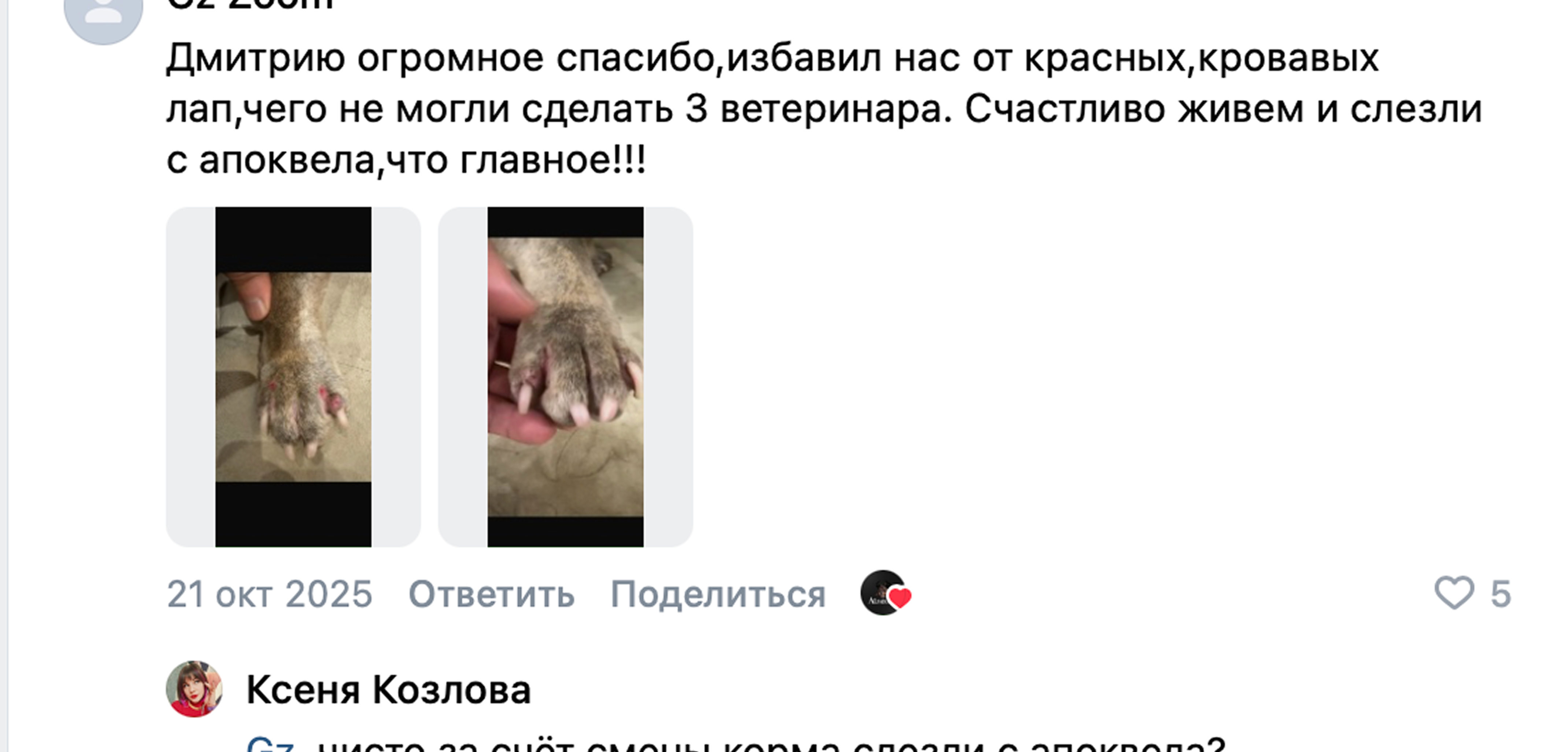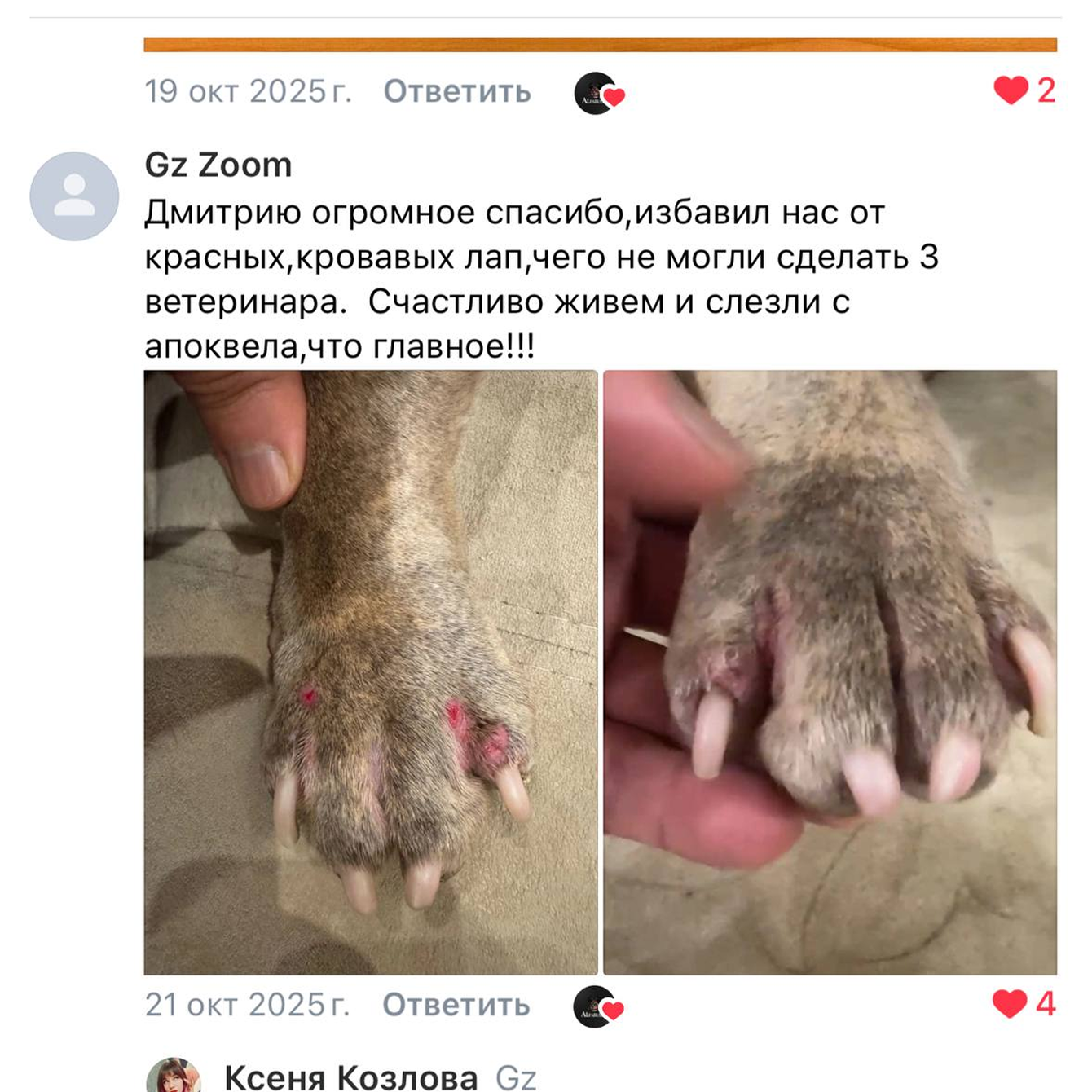 Я видел собак, у которых после таких “лечений” ампутировали лапы из-за запущенного межпальцевого дерматита,