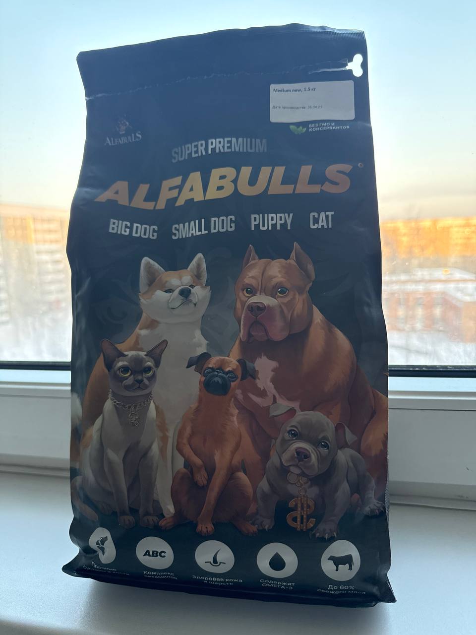 Гранула по размеру супер, приятно пахнет) натуральный состав и многоо мяса